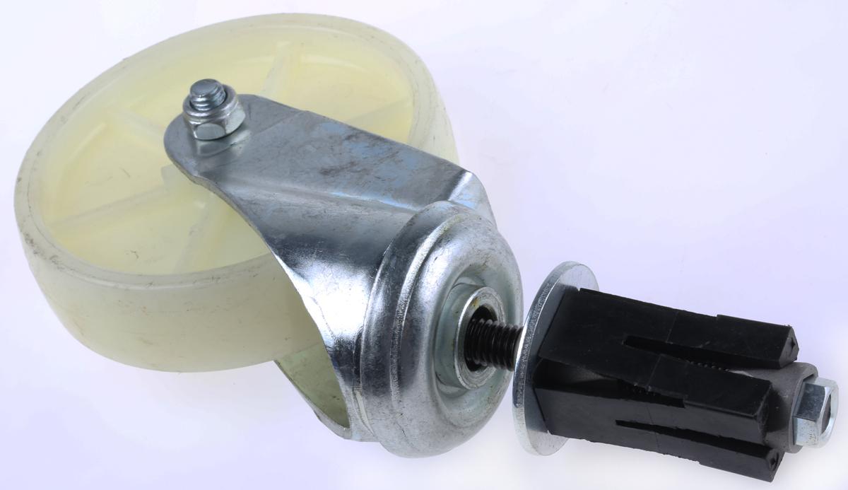 This is White Nylon Solid Wheel Zinc Plated Frame Castor Wheels Square Tube 25mm manufactured by RS Pro. The manufacturer part number is 519-116. It has a standard square tube type structural element . This [Component type] component is indispensable for product's effective functionality. It is designed to fit 25 mm struct profile . The product is of rs square tube system family . It has fits square tube profile of 25mm .