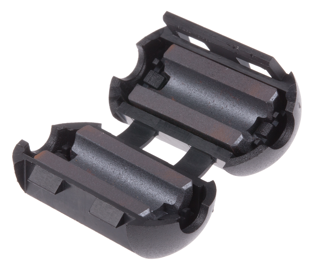 This is Openable Ferrite Clamp 16.5 Dia. x 29.5mm manufactured by RS Pro. The manufacturer part number is 123-2480. Its outer depth is approximately 29.5mm . It has round about 70ω impedance at 25 MHz . Its aperture diameter is about 5.2mm . While the outer width is 16.5mm. The product is made from highly stable and reliable ferrite. Its outer dimensions are 16.5 dia. x 29.5mm . It exhibits 120ω impedance at 100 MHz . Applications Information involves computer peripherals, digital tv, internal & external power cables, monitors, printers. It has 1 included apertures . It includes a key no . It has an openable nature yes . It comes in clamp filter configuration.