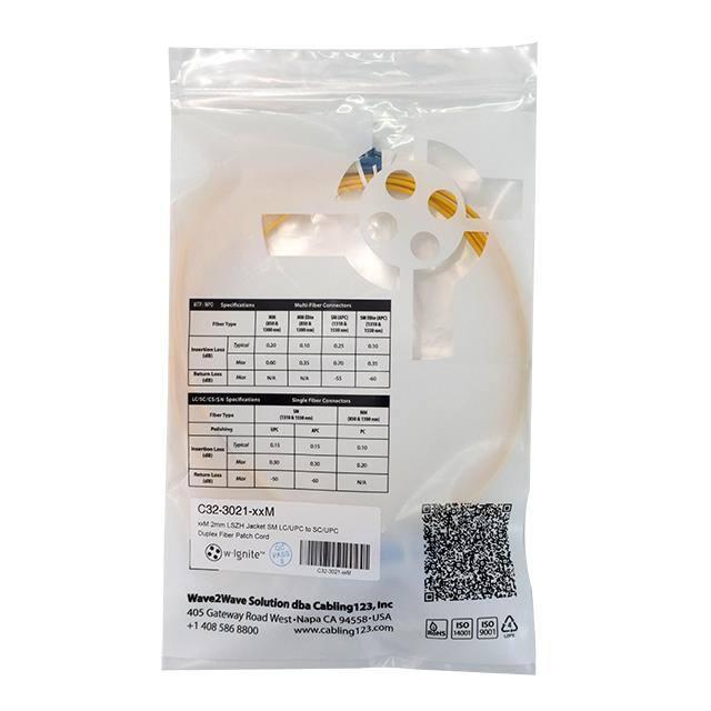 This is manufactured by Cabling123. The manufacturer part number is C32-3021-3M. It is assigned with possible HTSUS value of 8544.70.0000. The product is rohs compliant. Its jacket is made from highly insulated low smoke zero halogen (lszh) materials. It first connector includes lc duplex. The product has -20°c ~ 60°c operating temperature range. The second connector is sc duplex. The diameter of the cable includes 0.08" (2.0mm). It is shipped in bag package . Its typical moisture sensitivity level is not applicable. This connector has a classic blue colour. Allows 0.30db of insertion loss. Available in yellow colour. It has a smf fiber. It has a return loss of 50db. The product is designated with the ear99 code number.