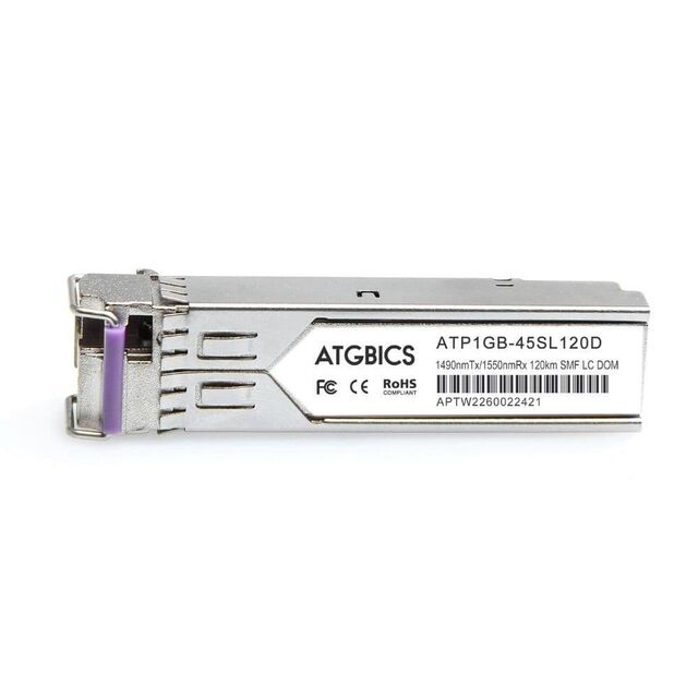 This is manufactured by ATGBICS. The manufacturer part number is EX-SFP-GE120KT14R15-C. The product is available in pluggable, sfp configuration. It is assigned with possible HTSUS value of 8517.62.0090. The product juniper® compatible, is a highly preferred choice for users. lc simplex Connector type offer robust functionality. Its typical moisture sensitivity level is not applicable. In addition, tray is the available packaging type of the product. The product is widely employed in networking, general purpose. It has optimum voltage supply of 3.3v. It has a maximised data speed rate of 1000mbps. It has a typical wavelength of 1490/1550nm. The atgbics's product offers user-desired applications. The product is designated with the 5a991 code number.