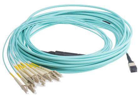 This is 10m Fibre Optic Cable Assembly Connector A: MTP Connector B: LC Multi Mode OM3 manufactured by RS Pro. The manufacturer part number is 738-8114. It has a/an multi mode propagation mode . It includes a/an lc type connector B . While the connector B is lc. The connector A is mtp connector. The communication channel is duplex . It is created with a/an om3 type fibre . The sheath has an adorable blue colour. Its connector A is of mtp type . Its accurate length is 10m. While the core is 4.5mm in diameter.