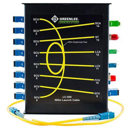 This is Fibre Optic Test Equipment Cord Set for 930 XC OTDR Conjunction with Singlemode OTDR manufactured by Greenlee. The manufacturer part number is LC-500. The product is highly suitable for conjunction with singlemode otdr, 930 xc otdr. It is a type of launch cable accessory.