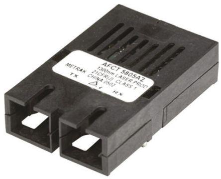 This is Fibre Optic Transceiver Round Connector 155Mbit/s 1360nm 9-Pin manufactured by FIT-Foxconn. The manufacturer part number is AFCT-5805AZ. The given dimensions of the product include 25.4 x 39.6 x 9.8mm. The product is available in through hole configuration. However, it has a rectangular shape connector . round Connector type offer robust functionality. In addition, it has a 2ns transmitter typical rise time . In addition, the height is 9.8mm. It has a peak transmitter with 1360nm wavelength . Furthermore, the product is 39.6mm wide. Its accurate length is 25.4mm. It is comprised of 9 pins. With a 2ns transmitter typical fall time . Furthermore, it has a maximum data rate of 155mbit/s .
