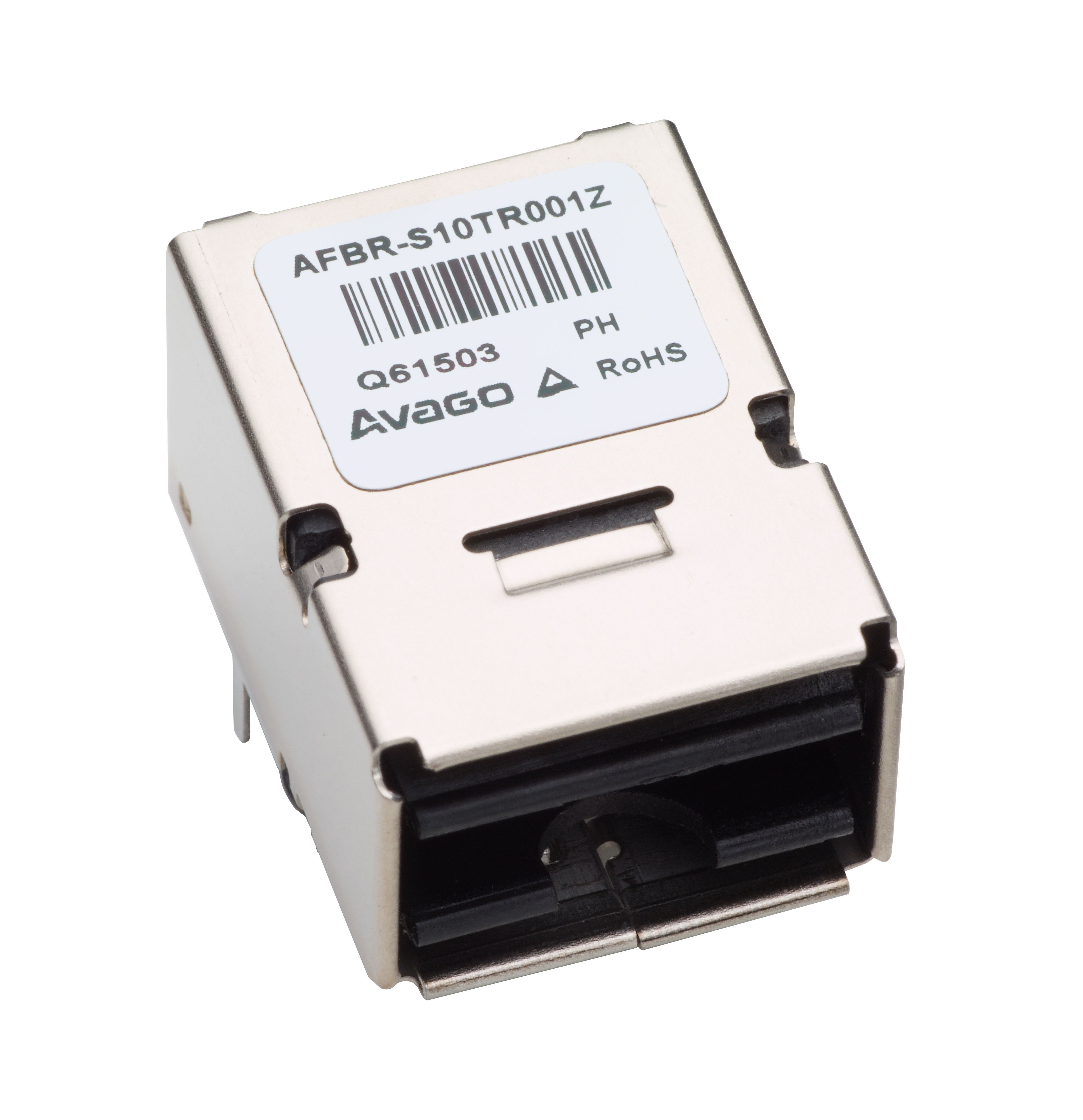 This is Fibre Optic Transceiver manufactured by Broadcom. The manufacturer part number is AFBR-S10TR001Z. However, it has a rectangular shape connector . In addition, it has a 40ns transmitter typical rise time . With a 100ns transmitter typical fall time .
