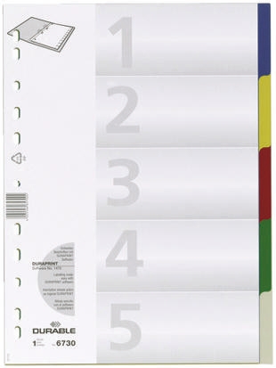 This is Assorted A4 File Divider manufactured by Durable. The manufacturer part number is 6730-27. It is recommended for a4 size paper . With blue, green, grey, red, yellow included colours . It has a decent assorted colour.