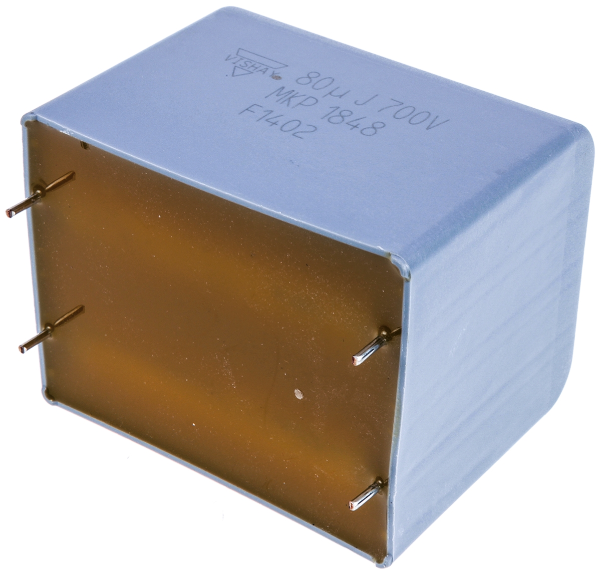 This is 80μF Polypropylene Capacitor PP 700V dc ±5% Tolerance Through Hole MKP1848 Series manufactured by Vishay. The manufacturer part number is MKP1848680704Y5. The given dimensions of the product include 57.5 x 45 x 45mm. Furthermore, the lead has 1.2mm diameter. The product mkp1848, is a highly preferred choice for users. Its accurate length is 57.5mm. In addition, the height is 45mm. It provides a 80µf of capacitance value. The product comes in 45mm depth. It carries a 700v dc of voltage. Whereas, the minimum operating temperature of the product is -40°c. The dielectric options include polypropylene. The product is available in through hole configuration. The lead features 52.5mm pitch. It has a maximum operating temperature of +85°c. It features ±5% of tolerance value. The terminal is a through hole type.