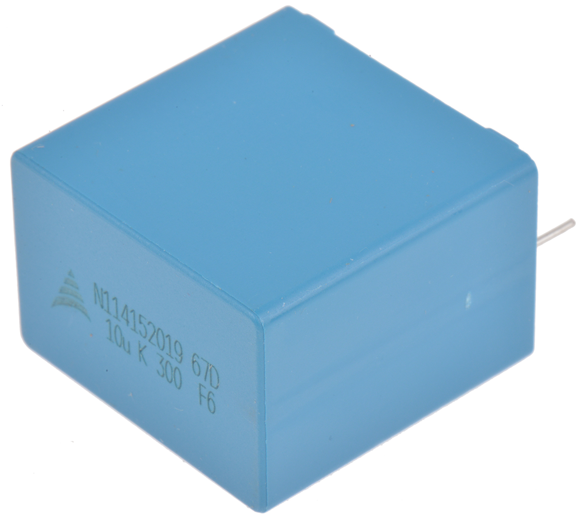This is 10μF Polypropylene Capacitor PP 300 V dc 450 V dc ±10% Tolerance B32674 Series manufactured by EPCOS. The manufacturer part number is B32674D3106K000. The given dimensions of the product include 31.5 x 21 x 31mm. Furthermore, the lead has 0.8mm diameter. The product b32674, is a highly preferred choice for users. It has 4.6mω equivalent series resistance. Its accurate length is 31.5mm. It provides a dissipation factor of ≤0.005 %@ 1khz. In addition, the height is 31mm. It provides a 10µf of capacitance value. The product comes in 21mm depth. It carries a 300 v dc, 450 v dc of voltage. Whereas, the minimum operating temperature of the product is -40°c. The lead is 6mm long. The product is available in through hole configuration. The lead features 27.5mm pitch. It has a maximum operating temperature of +105°c. It features ±10% of tolerance value. The terminal is a radial type.