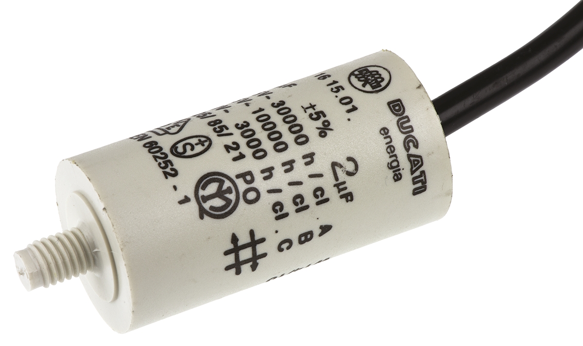 This is 2μF Polypropylene Capacitor PP 400 to 500V dc ±5% Tolerance Stud Mount 4.16.15 Series manufactured by Ducati Energia. The manufacturer part number is 4.16.15.01.14. The given dimensions of the product include 28 (dia.) x 55mm. The product is available in stud mount configuration. The product 4.16.15, is a highly preferred choice for users. In addition, the height is 55mm. It provides a 2µf of capacitance value. It carries a 400 → 500v ac of voltage. It features ±5% of tolerance value. The terminal is a flying leads type. The dielectric options include polypropylene.