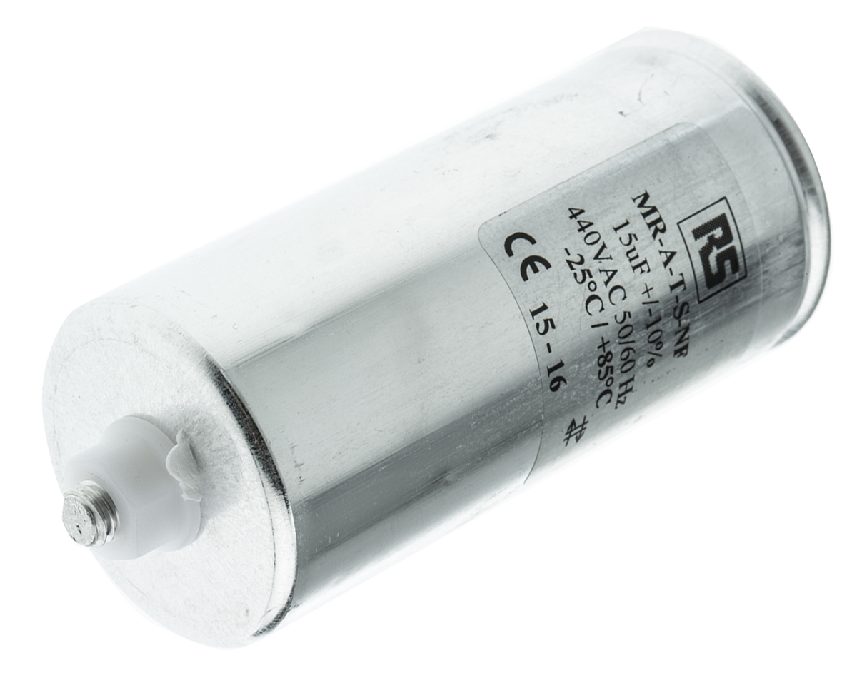 This is 15μF Polypropylene Capacitor PP 440V ac ±10% Tolerance Screw Mount MRA440 Series manufactured by RS Pro. The manufacturer part number is 196-4696. The given dimensions of the product include 40 (dia.) x 98mm. The product is available in screw mount configuration. The product mra440, is a highly preferred choice for users. It provides a dissipation factor of <0.15%. It provides a 15µf of capacitance value. Its accurate length is 98mm. It carries a 440v ac of voltage. Whereas, the minimum operating temperature of the product is -25°c. The dielectric options include polypropylene. It has a maximum operating temperature of +85°c. It features ±10% of tolerance value. The terminal is a screw mount type.