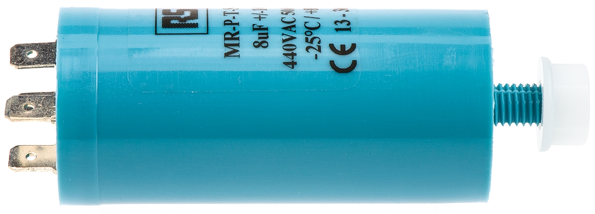 This is 8μF Polypropylene Capacitor PP 440V ac ±10% Tolerance Screw Mount MRP440 Series manufactured by RS Pro. The manufacturer part number is 196-4567. The given dimensions of the product include 35 (dia.) x 75mm. The product is available in screw mount configuration. The product mrp440, is a highly preferred choice for users. It provides a dissipation factor of <0.15%. It provides a 8µf of capacitance value. Its accurate length is 75mm. It carries a 440v ac of voltage. Whereas, the minimum operating temperature of the product is -25°c. The dielectric options include polypropylene. It has a maximum operating temperature of +85°c. It features ±10% of tolerance value. The terminal is a screw mount type.