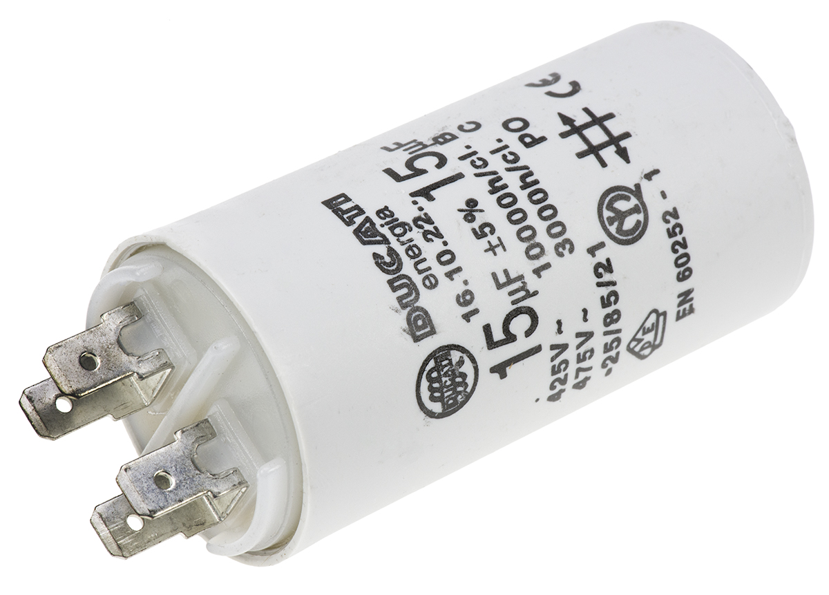 This is 15μF Polypropylene Capacitor PP 450V ac ±5% Tolerance Stud Mount 4.16.10 Series manufactured by Ducati Energia. The manufacturer part number is 4.16.10.22.64. The given dimensions of the product include 36 (dia.) x 70mm. The product is available in stud mount configuration. The product 4.16.10, is a highly preferred choice for users. In addition, the height is 70mm. It provides a 15µf of capacitance value. It carries a 450v ac of voltage. It features ±5% of tolerance value. The terminal is a flying leads type. The dielectric options include polypropylene.