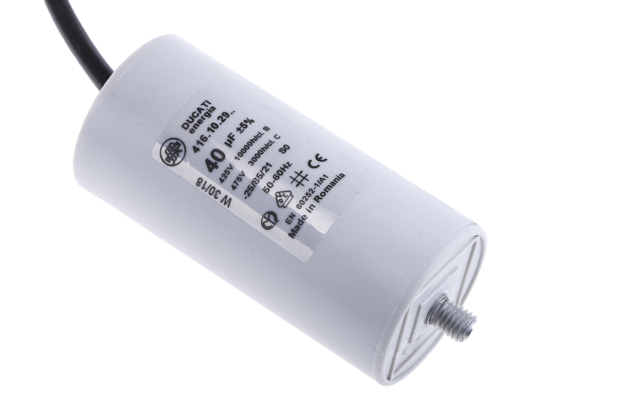 This is 40μF Polypropylene Capacitor PP 400 to 500V dc ±5% Tolerance Stud Mount 4.16.10 Series manufactured by Ducati Energia. The manufacturer part number is 4.16.10.29.14. The given dimensions of the product include 45 (dia.) x 92mm. The product is available in stud mount configuration. The product 4.16.10, is a highly preferred choice for users. In addition, the height is 92mm. It provides a 40µf of capacitance value. It carries a 400 → 500v ac of voltage. It features ±5% of tolerance value. The terminal is a flying leads type. The dielectric options include polypropylene.