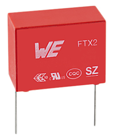 This is 220nF Polypropylene Capacitor PP 275V ac ±10% Tolerance WCAP-FTX2 Series manufactured by Wurth Elektronik. The manufacturer part number is 890324026003. It is a x2 suppression class. The given dimensions of the product include 26 x 6 x 15mm. Furthermore, the lead has 0.8mm diameter. The product wcap-ftx2, is a highly preferred choice for users. Its accurate length is 26mm. It provides a dissipation factor of <2%. In addition, the height is 15mm. It provides a 220nf of capacitance value. The product comes in 6mm depth. It carries a 275v ac of voltage. Whereas, the minimum operating temperature of the product is -40°c. The lead is 20mm long. The lead features 22.5mm pitch. It has a maximum operating temperature of +105°c. It features ±10% of tolerance value. The terminal is a radial type. The dielectric options include metallised polypropylene.