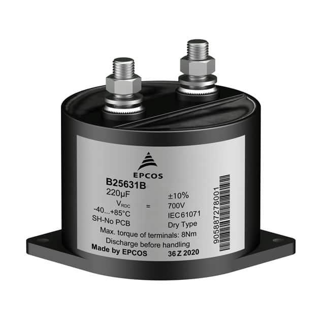 This is manufactured by TDK Electronics Inc.. The manufacturer part number is B25631B2306K000. It features 30µf film capacitor 2000v (2kv) radial, can. It carries ESR (Equivalent Series Resistance) of 2.5 mohms. It has the maximum seated height of 2.559" (65.00mm). The product is available in chassis mount configuration. It provides a 30µf of capacitance value. The product b25631, is a highly preferred choice for users. Moreover, the product comes in radial, can. The product's diameters include 3.346" dia (85.00mm). The product is widely employed in general purpose. The product has -40°c ~ 85°c operating temperature range. It is assigned with 1.772" (45.00mm) of lead spacing. 2000v (2kv) of DC voltage rating. The product features threaded, male termination style. It features ±10% of tolerance value. The tdk electronics inc.'s product offers user-desired applications.