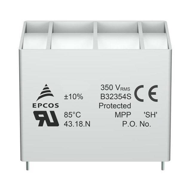 This is manufactured by EPCOS - TDK Electronics. The manufacturer part number is B32354S2256K010. 400v of DC voltage rating. It is assigned with possible HTSUS value of 8532.25.0070. The product is rohs3 compliant. It carries ESR (Equivalent Series Resistance) of 8 mohms. It provides a 25 µf of capacitance value. The product has -40°c ~ 85°c operating temperature range. Moreover, the product comes in radial - 4 leads. It features ±10% of tolerance value. It has the maximum seated height of 1.811" (46.00mm). Moreover, the product is constructed from highly polypropylene (pp), metallized dielectric material. The product exhibits 275v of AC voltage rating. In addition, it is reach unaffected. The product is widely employed in emi, rfi suppression. It is shipped in bulk package . The product's diameters include 2.264" l x 1.378" w (57.50mm x 35.00mm). The product features pc pins termination style. It has a long 17 weeks standard lead time. Its typical moisture sensitivity level is not applicable. The product is available in through hole configuration. The product b32354* - mkp ac boxed, is a highly preferred choice for users. It is assigned with 2.067" (52.50mm) of lead spacing. The product is designated with the ear99 code number.