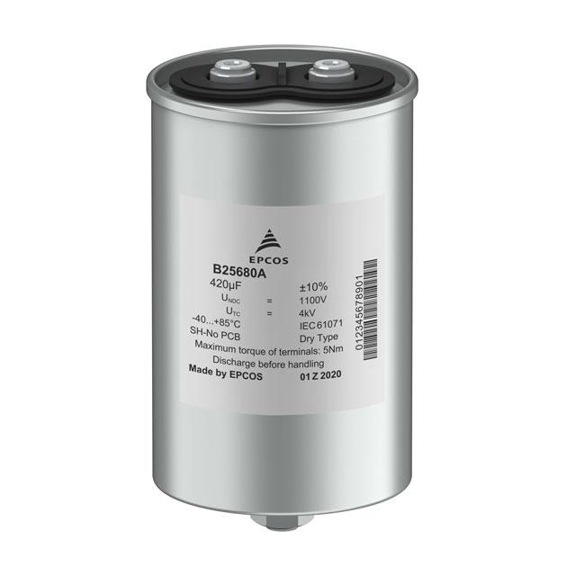 This is manufactured by EPCOS - TDK Electronics. The manufacturer part number is B25680B0557K901. 900v of DC voltage rating. It is assigned with possible HTSUS value of 8532.25.0070. The product is rohs3 compliant. It carries ESR (Equivalent Series Resistance) of 2.3 mohms. It provides a 550 µf of capacitance value. The product has -40°c ~ 85°c operating temperature range. Moreover, the product comes in radial, can. It features ±10% of tolerance value. It has the maximum seated height of 5.354" (136.00mm). In addition, it is reach unaffected. The product is widely employed in general purpose. It is shipped in bulk package . The product's diameters include 3.346" dia (85.00mm). The product features threaded, female termination style. It has a long 27 weeks standard lead time. Its typical moisture sensitivity level is not applicable. The product is available in chassis, stud mount configuration. The product mkp dc link - heavy duty, is a highly preferred choice for users. It is assigned with 1.260" (32.00mm) of lead spacing. The product is designated with the ear99 code number.