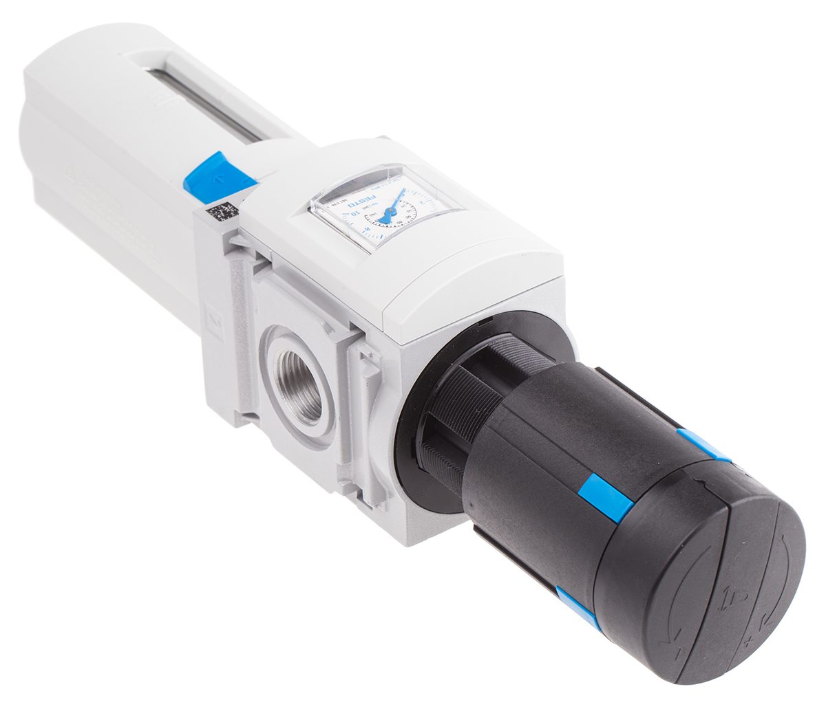 This is MS6-LFR 40μm G 1/2 Filter Regulator G 1/2 12 bar 1/2 in 1/2 in manufactured by Festo. The manufacturer part number is MS6-LFR-1/2-D6-ERV-AS. Provides g 1/2 of port connection. It has a minimum -10°c ambient operating temperature . It features 12 bar maximum operating pressure. It has a bowl made of polycarbonate material . This is basically a automatic drain. Additionally, it has a pressure gauge port of 1/2 in thread size . Additionally, it has a maximum +60°c ambient operating temperature . It has a model number 529182. It has a standard 1/2 in port connection thread size . It has a/an g 1/2 gauge pressure port . It has a minimum 2bar operating pressure . It has a maximum +60°c process operating temperature . The product has a ms6-lfr manufacturer series. In addition, it has a port connection of g thread standard . The product has a minimum -10°c process operating temperature . Moreover, its filtration is about 40µm in size . It has -10 → +60°c ambient operating temperature range . It has a standard -10 → +60°c process operating temperature range . Additionally, the product has a pressure gauge port of g thread standard .