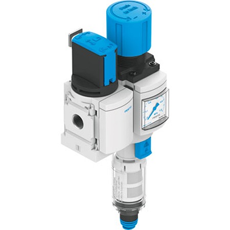 This is MS4 Filter Regulator 10 bar manufactured by Festo. The manufacturer part number is MS4-EM1FR-1/4-D6-E-P-VC-AG-MPA-WPE-B. The product has a ms4 manufacturer series. It has a model number ms4-em1fr-1/4-d6-e-p-vc-ag-mpa-wpe-b. It features 10 bar maximum operating pressure.