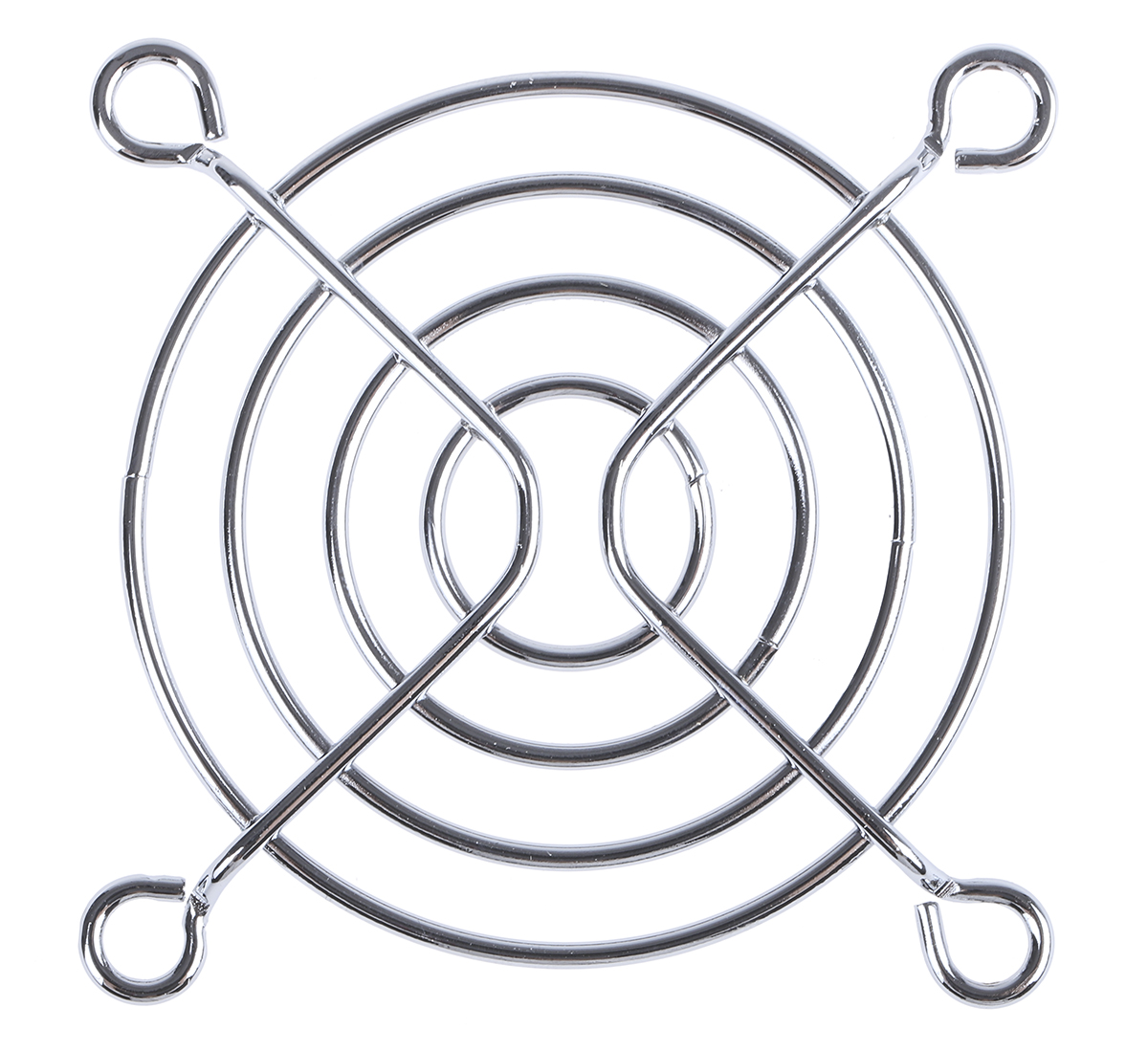This is Finger Guard 60mm Steel manufactured by RS Pro. The manufacturer part number is 737-3973. It has a decent chrome colour. The product is made from highly stable and reliable steel. It has a standard 50mm screw hole spacing . The product is 53mm wide. Its fan size is about 60mm .