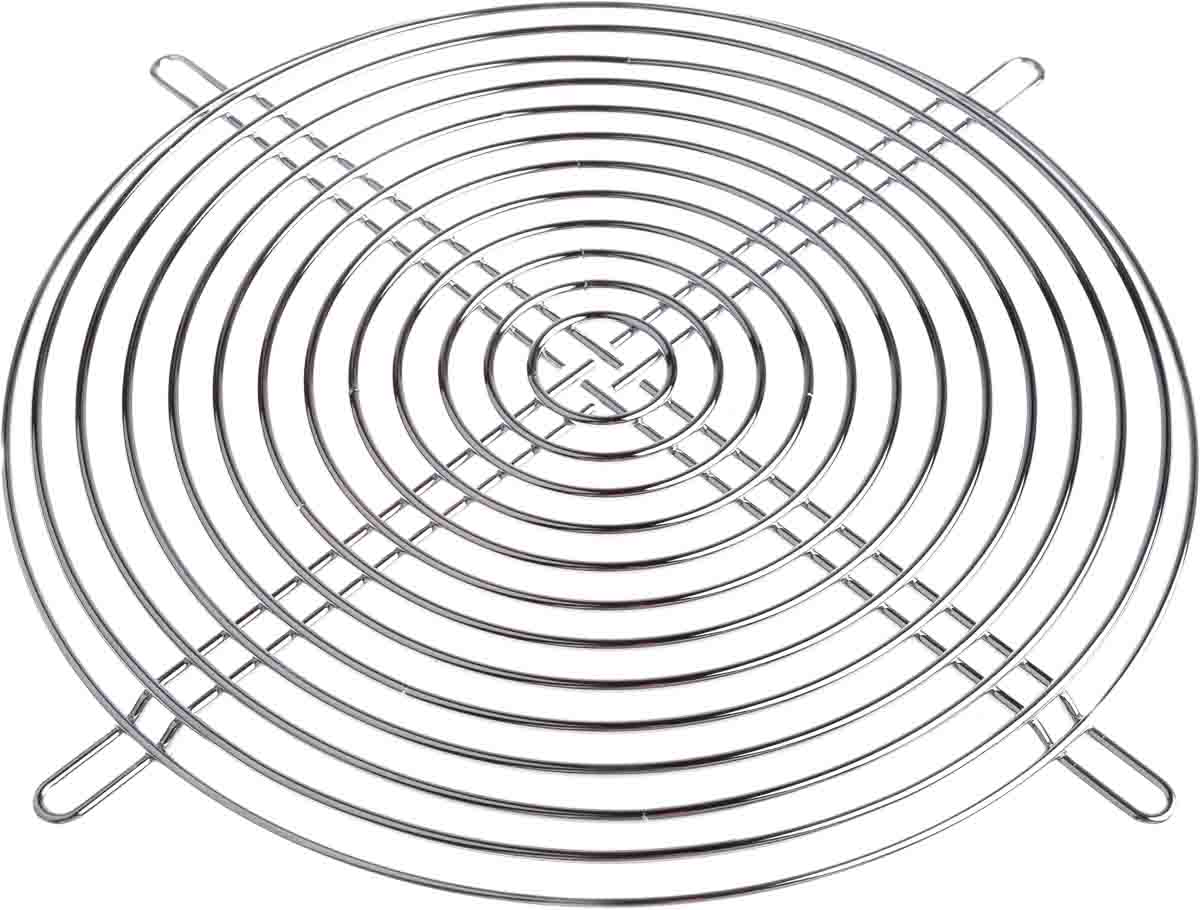 This is Finger Guard 225mm Steel manufactured by RS Pro. The manufacturer part number is 737-4020. It has a decent chrome colour. The product is made from highly stable and reliable steel. It has a standard 240mm screw hole spacing . The product is 215mm wide. Its fan size is about 225mm .