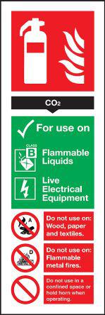 This is Vinyl Fire Safety Sign Fire Safety Sign with English Text Self-Adhesive 90 x 280mm manufactured by RS Pro. The manufacturer part number is 763-1960. Its text message shows for use on - flammable liquids, live electrical equipment . Additionally, it is self-adhesive yes . It has a label . It has a decent green/red/white colour. The product is made from highly stable and reliable vinyl. In addition, the height is 280 mm. Furthermore, the product is 90mm wide. It contains 1 item per package . However, its text language is english . In addition, it displays fire extinguisher sign description .