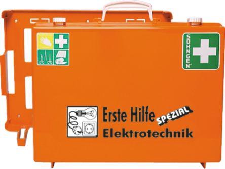 This is Carrying Case First Aid Kit 400 mm x 300mm x 150 mm manufactured by W Sohngen. The manufacturer part number is 0360113. The casing is constructed from highly stable abs material. The electrical engeneering first aid kit is designed to provide robust applications in a variety of specific settings. It has a carrying case type case . In addition, the height is 400 mm. In addition, the product's kit/refill contents are bandage, cold pack, plasters, special units & instruments, spray, wipes . Furthermore, the product is 300mm wide. The product comes in 150 mm depth. It has a model spezial mt-cd.