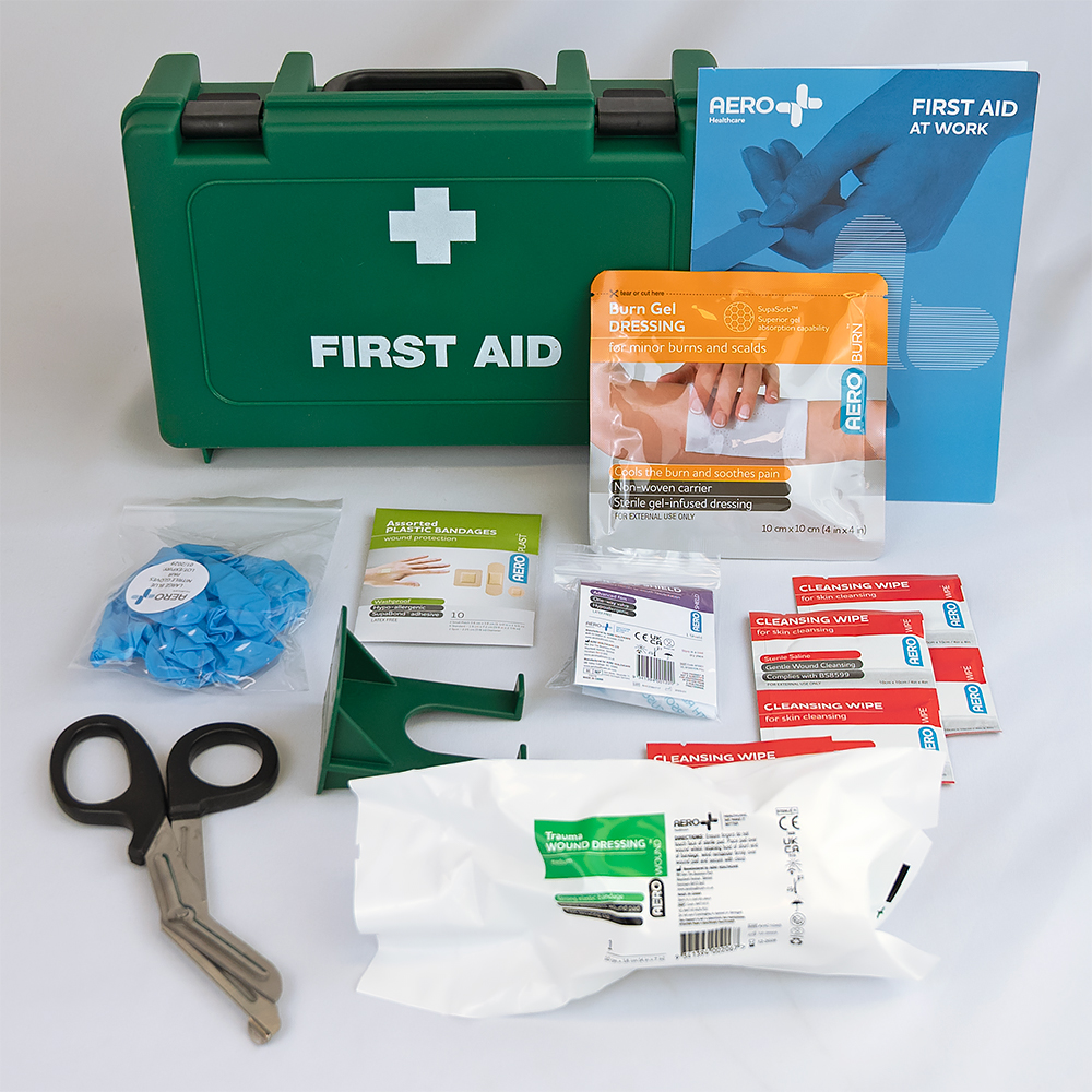 This is First Aid Kit Carrying Case manufactured by RS PRO. The manufacturer part number is 279-0873. In addition, the product's kit/refill contents are aeroguide™ a6 first aid leaflet x 1, aeroburn™ sterile gel dressing 10 x 10cm x 1, aeroplast™ washproof assorted plasters – env/10 x 1, aeroglove™ nitrile gloves powder free large x 1 pair, aeroshield™ cpr face shield x 1, aerowound™ medium trauma dressing 10 x 18 cm x 1, aerowipe™ saline cleansing wipes x 5, aero tuffcut™ scissors 7.5″ x 190mm x 1 . The casing is constructed from highly stable plastic material. The first aid kit is designed to provide robust applications in a variety of specific settings. It has a carrying case type case .