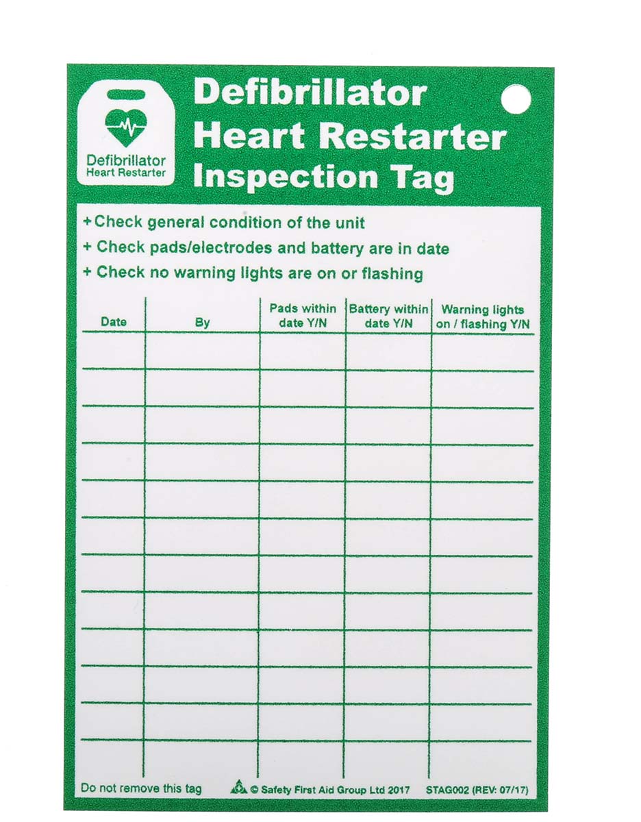 This is Defibrillator Heart Restarter Inspection Tag-Text English Sign manufactured by RS PRO. The manufacturer part number is 181-1507. Its text message shows defibrillator heart restarter inspection tag . Additionally, it is self-adhesive no . It has a sign . It has a decent green/white colour. The product is made from highly stable and reliable paper. In addition, the height is 130 mm. Furthermore, the product is 85mm wide. It contains 10 item per package . However, its text language is english . Moreover, it includes a photoluminescent quality no . In addition, it displays aed sign description .