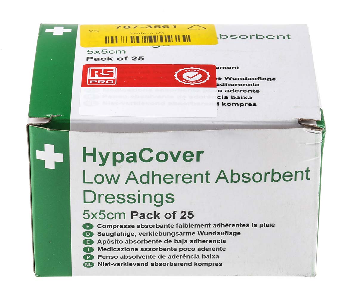This is 25 First Aid Bandages (5 x 5 cm) manufactured by RS Pro. The manufacturer part number is 787-3561. It comes in dressing configuration.