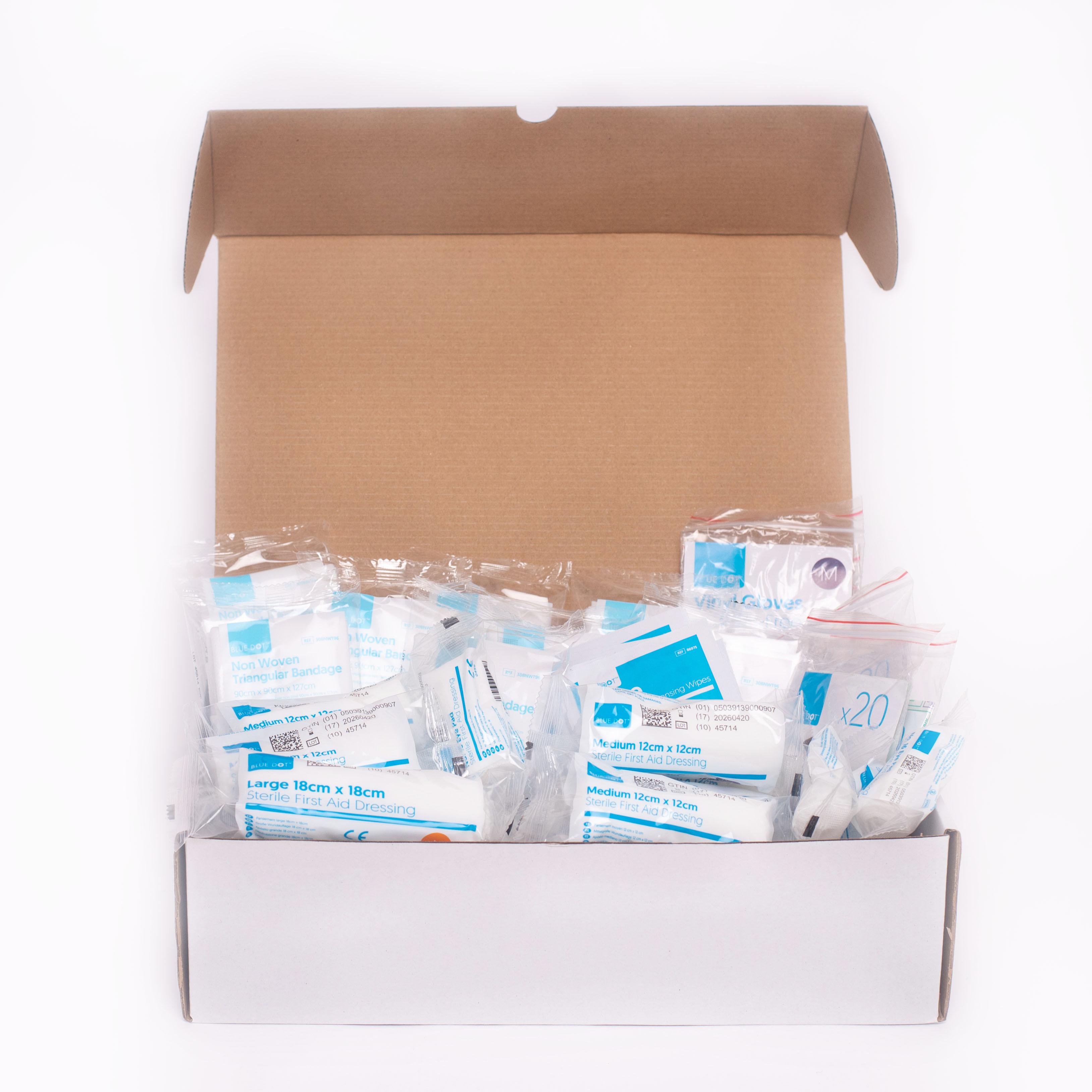 This is Cotton Blue White First Aid Kit 1Each Per Package manufactured by Crest Medical. The manufacturer part number is 10R. It has a decent blue, white colour. The product is made from highly stable and reliable cotton. It comes in first aid kit configuration. It contains 1each item per package .