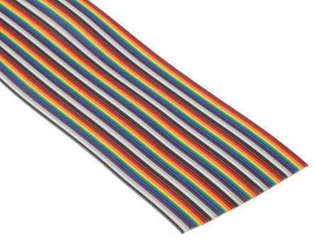 This is 50 Way Unscreened Flat Ribbon Cable 63.63 mm Width 30m manufactured by RS Pro. The manufacturer part number is 360-015. It is of high density no . Features 28 - American Wire Gauge. It provides a 42.64 pf/m of capacitance value. Moreover, this cable has a ribbon shape. Moreover, the product has a nominal 300 v voltage rating. Its reel is 30m in length . Additionally, it contains 7 strands. The core strands are 7/36. The sheath has an adorable multicoloured colour. Furthermore, the product is 63.63 mm wide. Screen Options - unscreened. Whereas, the minimum operating temperature of the product is -20°c. Moreover, the product is 1.27mm. It has a Hi-flex feature included no . It comprises 50 ways. It has a stranded type conductor strand . The typical characteristic impedance includes 105 ω. It has a maximum operating temperature of +105°c. The strand size includes 36 awg.