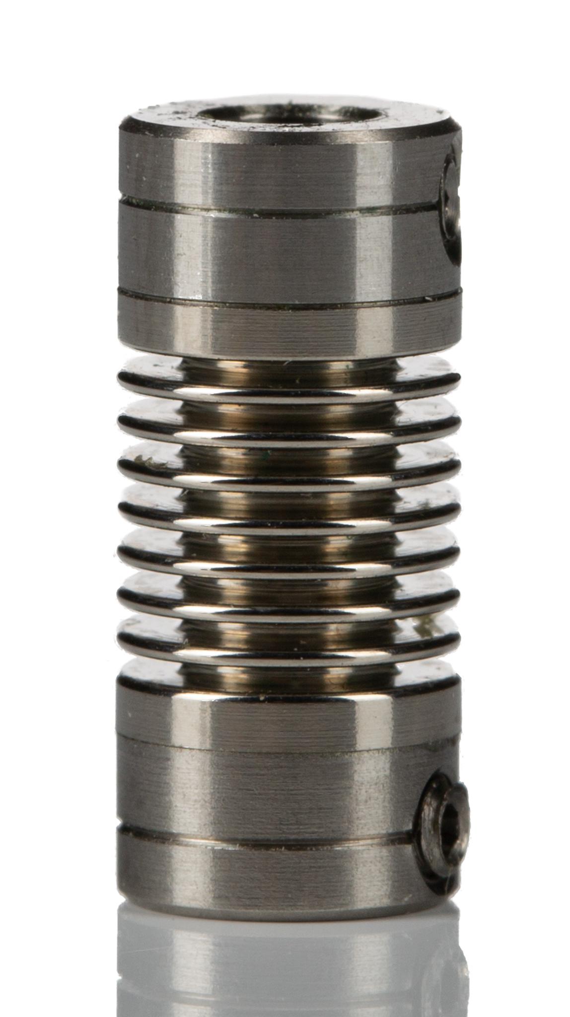 With its electrodeposited nickel finish, this bellows coupling is suitable for environments that require resistance to corrosion and a long service life. The nickel bellows construction provides high torsional rigidity while accommodating misalignments in multiple directions, which is critical for maintaining shaft alignment and protecting bearings and gears under varying loads.