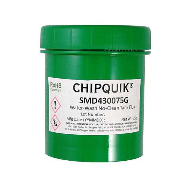 This is manufactured by Chip Quik Inc.. The manufacturer part number is SMD430075G. It is assigned with possible HTSUS value of 3810.10.0000. The product is rohs3 compliant. The product is highly reliable with a long-lasting period of 24 months. It comes in flux - no clean, water-soluble configuration. The product is designed as a nice jar, 2.65 oz (75g). In addition, it is reach unaffected. Its warranty starts from date of manufacture. It offers storage features at 37°f ~ 77°f (3°c ~ 25°c). The chip quik inc.'s product offers user-desired applications. Its typical moisture sensitivity level is not applicable. It has a long 2 weeks standard lead time. The product chipquik® smd4300, is a highly preferred choice for users. In addition, bulk is the available packaging type of the product. Moreover, it corresponds to smd4300, a base product number of the product. The product is designated with the ear99 code number.
