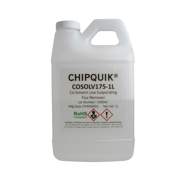 This is manufactured by Chip Quik Inc.. The manufacturer part number is COSOLV175-1L. It is assigned with possible HTSUS value of 3810.10.0000. The product is rohs3 compliant. It comes in flux remover configuration. The product is designed as a nice jug, 1l. In addition, it is reach unaffected. It offers storage features at 37°f ~ 77°f (3°c ~ 25°c). It is shipped in bulk package . Its typical moisture sensitivity level is not applicable. It has a long 4 weeks standard lead time. The product cosolv 175™, is a highly preferred choice for users. The product is designated with the ear99 code number.