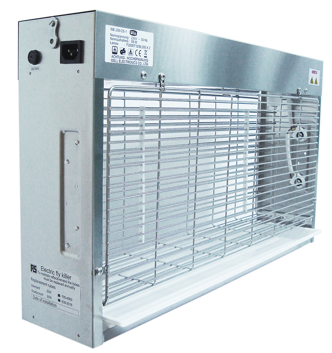 This is Fly Killer Light Fitting 2 x 20W Steel Case manufactured by RS Pro. The manufacturer part number is 473-0856. Whereas, its peak wavelength is 365 nm . This product carries 40 w. In addition, the product is shatterproof yes . The lamp base is g13. It includes a/an linear shape lamp . Adding to this, it has a long life span for about 20000h.
