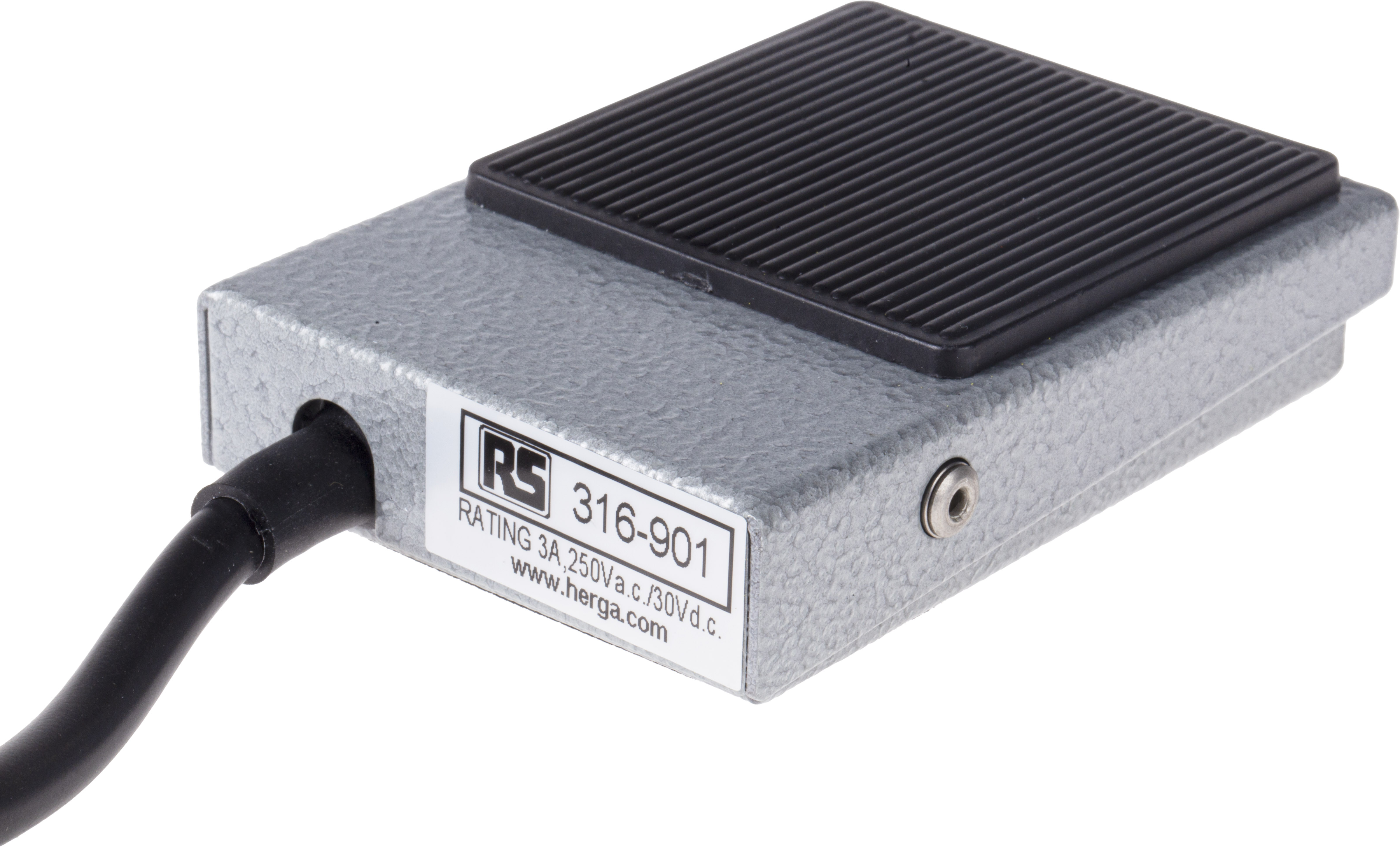 This is General Purpose Foot Switch Mild Steel Momentary SPDT 3 A @ 250 V ac 3 A @ 30 V dc 250V IPX2 manufactured by RS Pro. The manufacturer part number is 316-901. The product is created for general purpose switch environment . It provides momentary switch operation. The given dimensions of the product include 90 x 66 x 24mm. It has about 250v contact AC voltage rating . It is IP rated with ipx2. The rated contact current is 3 a. It has a 30v contact voltage rating DC . It has a decent black, grey colour. The contact is equipped with sp-co configuration. The casing is constructed from highly stable mild steel material. In addition, the height is 24mm. It has a/an momentary foot switch . Furthermore, the product is 66mm wide. Its accurate length is 90mm. It has 1 pedal(s) . The product is made from sturdy silver materials. The product complies with all safety standards, such as 2014/35/eu, en 60950.