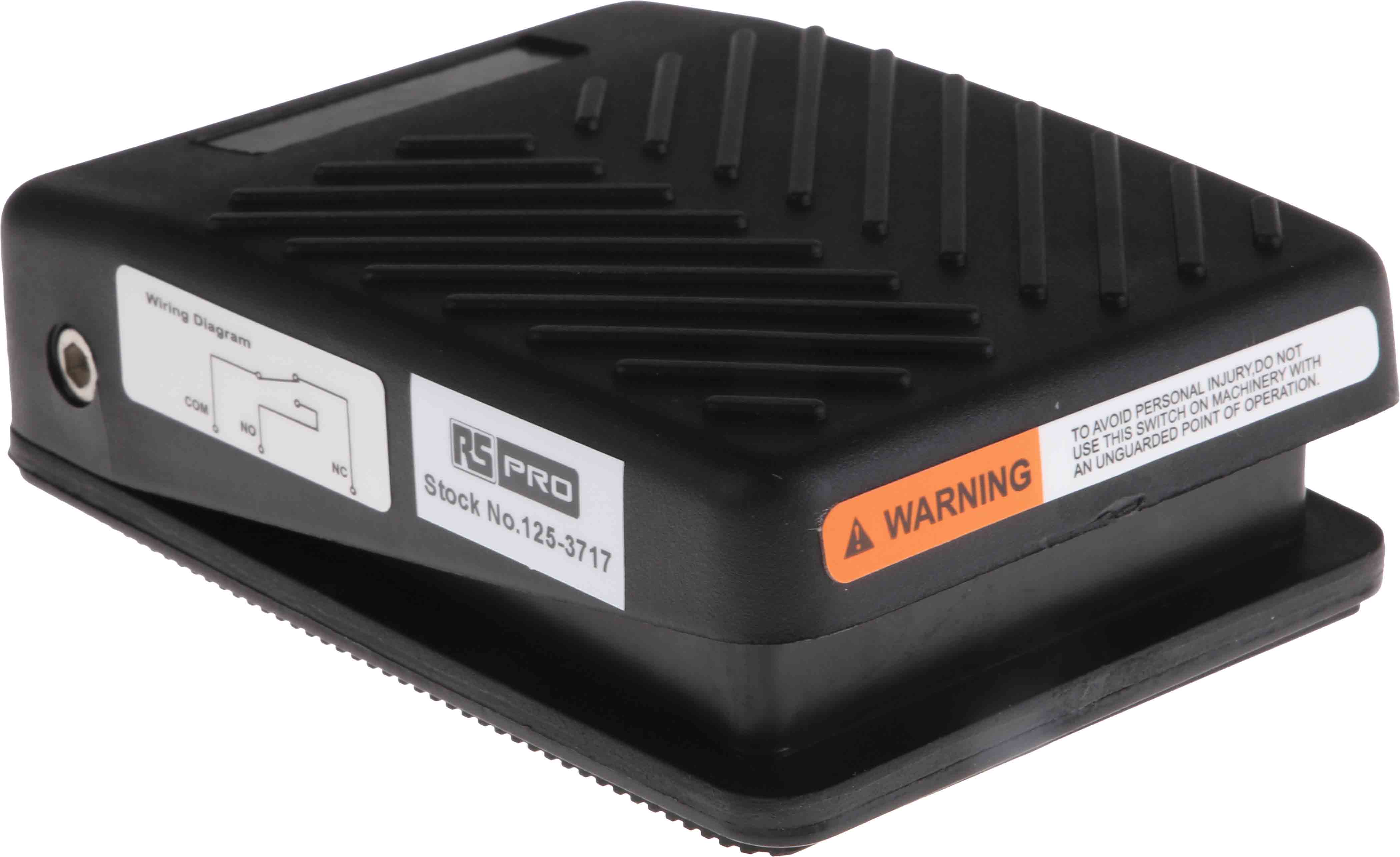 This is Foot Switch Glass Fibre Reinforced Plastic Momentary Single Pole Double Throw (SPDT) 15 A 250V IP20 manufactured by RS Pro. The manufacturer part number is 125-3717. The product is created for light duty switch environment . The given dimensions of the product include 75 x 100 x 33mm. It has about 250v contact AC voltage rating . It is IP rated with ip20. The rated contact current is 15 a. It has a decent black colour. The contact is equipped with sp-co configuration. The casing is constructed from highly stable glass fibre reinforced plastic material. In addition, the height is 33mm. It has a/an momentary foot switch . Furthermore, the product is 100mm wide. Its accurate length is 75mm. It provides momentary switch operation. The product complies with all safety standards, such as ccc, ce, csa, culus, culus recognised.