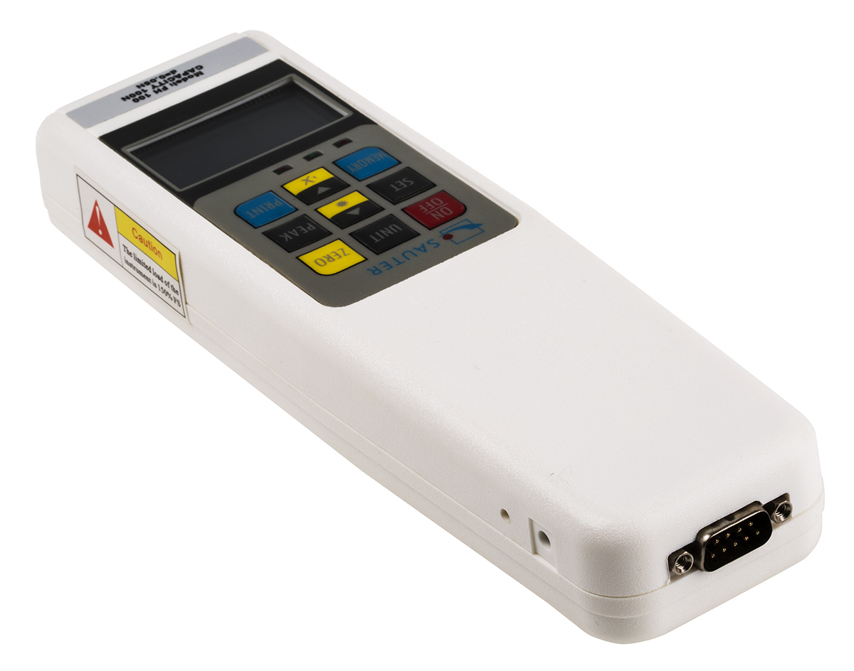 This is Force Gauge 2000Hz RS232 Range: 100N Resolution: 0.05 N manufactured by Sauter. The manufacturer part number is FH 100. In addition, it is offered with ±0.5 % best accuracy . With rs232 digital output . The typical product's weight is 640g. It has a maximum operating temperature of +30°c. The plug is a highly reliable type c - european plug with long service life. In addition, the height is 36mm. Furthermore, the product is 63mm wide. It features 100n range. Its accurate length is 238mm. Whereas, the minimum operating temperature of the product is +10°c. It has about 2000hz sampling rate . Features 0.05 n resolution. Its measurement units are kgf, lbf, n .