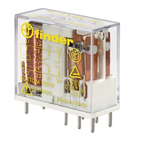 This is 24V dc Coil Non-Latching Relay DPDT 8A Switching Current PCB Mount 2 Pole manufactured by Finder. The manufacturer part number is 50.12.9.024.1000. The coil voltage of the product is 24v dc. It holds up to 820ω coil resistance. It is capable of doing 100000 (electrical) cycles, 10000000 (mechanical)cycles in a lifetime . The product complies with all safety standards, such as en61810-3 type b. Robust coil power of 700mw. The product complies with cruus. The product has 6kv isolation coil to contact. It has a maximum operating temperature of +70°c. The terminal is a through hole type. It is integrated with 8a switching current. The contact is equipped with dpdt configuration. The product comes in 12.4mm depth. The product is available in pcb mount configuration. The product 50, is a highly preferred choice for users. Its accurate length is 29mm. In addition, the height is 25mm. It has a maximum AC switching voltage of 400v. Whereas, the minimum operating temperature of the product is -40°c. It also features an AC switching power of 2 kva. It has equipped with 2 poles. The product is made from sturdy silver alloy materials.