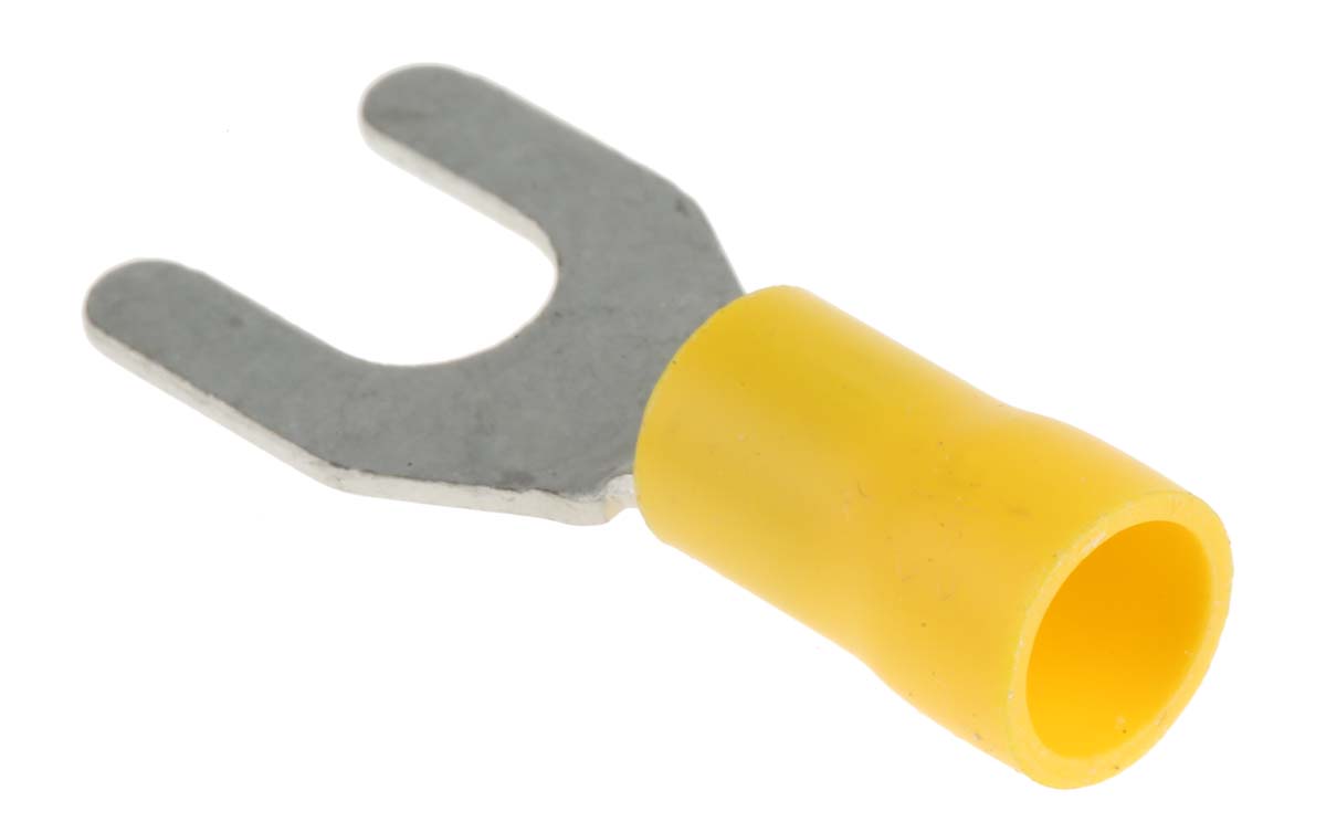 This is Insulated Crimp Spade Connector 2.5mm² to 6mm² 12AWG to 10AWG M6 Stud Size Vinyl Yellow manufactured by RS Pro. The manufacturer part number is 534-474. The wire has a maximum size of 6mm². It has a decent yellow colour. While the minimum wire size AWG includes 12awg. It is 1mm thick. It has a standard m6 size stud . Furthermore, the product is 12mm wide. It has a robust vinyl insulation material. The high-quality tin is used as contact plating material. It has an overall length of 32.5mm. Insulation Option: insulated. Its maximum wires size includes 10awg. On the other hand, the wire has 2.5mm² of minimum size. The product is made from sturdy copper materials.