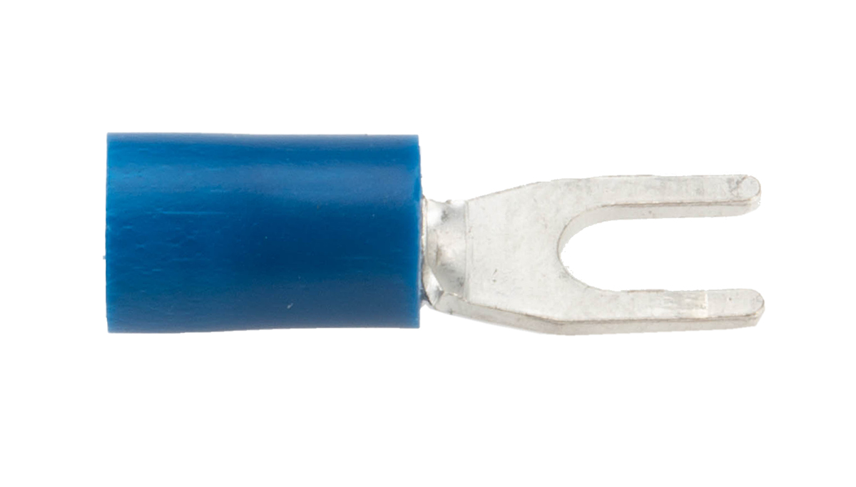 This is Insulated Crimp Spade Connector 1.5mm² to 2.5mm² 16AWG to 14AWG M3.5 Stud Size Vinyl Blue manufactured by RS Pro. The manufacturer part number is 534-632. The wire has a maximum size of 2.5mm². It has a decent blue colour. While the minimum wire size AWG includes 16awg. It is 0.8mm thick. It has a standard m3.5 size stud . Furthermore, the product is 6.4mm wide. The high-quality tin is used as contact plating material. It has an overall length of 20.5mm. Insulation Option: insulated. Its maximum wires size includes 14awg. On the other hand, the wire has 1.5mm² of minimum size. It has a robust vinyl insulation material. The product is made from sturdy copper materials.