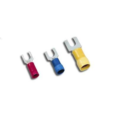 This is Insulated Fork Terminal Polycarbonate manufactured by MECATRACTION. The manufacturer part number is C100SRGFA1-4. Insulation Option: insulated. Furthermore, the product is 6.5mm wide. It has a robust polycarbonate insulation material.