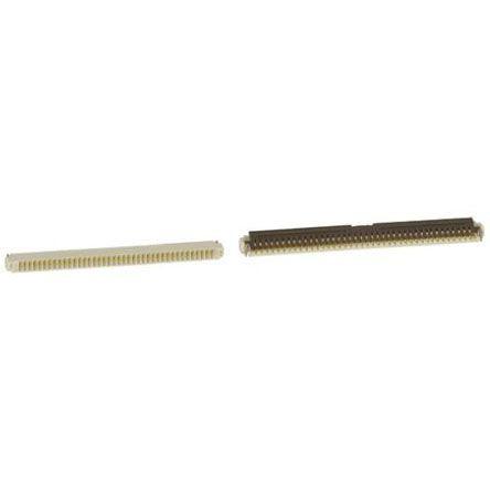 This is FH33 Series 0.5mm Pitch 36 Way Right Angle SMT Female FPC Connector ZIF Bottom Contact manufactured by Hirose. The manufacturer part number is FH33-36S-0.5SH(10). The product contains 36 contacts. The product has a current rating of 500ma. The product is designed with a zif bottom contact termination. The product is available in surface mount configuration. Moreover, the product has a nominal 50 v ac voltage rating. In addition, female is the available "Gender" of the product. It has right angle body orientation. Moreover, the product is 0.5mm. It allows solder termination method. The product also features robust polyamide housing material. It comes in 1 of rows. The high-quality gold is used as contact plating material. The product fh33, is a highly preferred choice for users. The product is made from sturdy phosphor bronze materials. It has a maximum operating temperature of +85°c. Whereas, the minimum operating temperature of the product is -55°c. It carries [Serial Number] serial number.