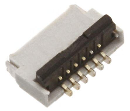This is FH34S Series 0.5mm Pitch 6 Way Right Angle SMT Female FPC Connector ZIF Top and Bottom Contact manufactured by Hirose. The manufacturer part number is FH34S-6S-0.5SH(50). The product has a current rating of 500ma. The product is designed with a zif top and bottom contact termination. The product is available in surface mount configuration. Moreover, the product has a nominal 50 v ac voltage rating. Whereas, the minimum operating temperature of the product is -55°c. In addition, female is the available "Gender" of the product. It has right angle body orientation. Moreover, the product is 0.5mm. It allows solder termination method. The product also features robust liquid crystal polymer, polyamide housing material. It comes in 1 of rows. The high-quality gold is used as contact plating material. The product fh34s, is a highly preferred choice for users. The product contains 6 contacts. It has a maximum operating temperature of +85°c. It has 3d cad model CAD drawing . The product is made from sturdy phosphor bronze materials.