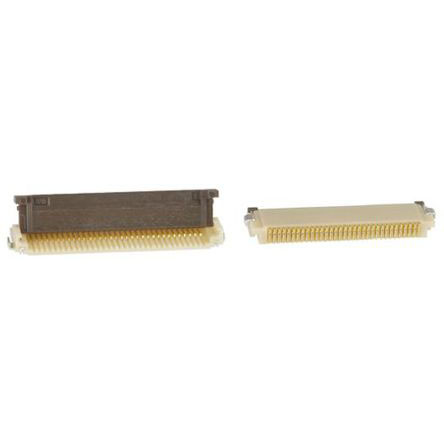 This is FH12 Series 0.5mm Pitch 33 Way Right Angle SMT Female FPC Connector ZIF Bottom Contact manufactured by Hirose. The manufacturer part number is FH12-33S-0.5SH(55). The product has a current rating of 500ma. The high-quality gold is used as contact plating material. The product is available in surface mount configuration. Moreover, the product has a nominal 50 v ac voltage rating. In addition, female is the available "Gender" of the product. It has right angle body orientation. Moreover, the product is 0.5mm. It allows solder termination method. The product also features robust pps·polyamide housing material. It comes in 1 of rows. The product fh12, is a highly preferred choice for users. The product is designed with a zif bottom contact termination. The product contains 33 contacts. It has a maximum operating temperature of +85°c. Whereas, the minimum operating temperature of the product is -40°c. The product is made from sturdy phosphor bronze materials.