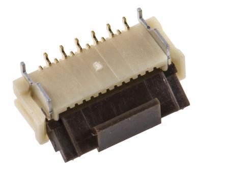 This is FH12 Series 0.5mm Pitch 12 Way Straight SMT Female FPC Connector ZIF Vertical Contact manufactured by Hirose. The manufacturer part number is FH12-12S-0.5SV(55). The product has a current rating of 500ma. The product is designed with a zif vertical contact termination. The product is available in surface mount configuration. Moreover, the product has a nominal 50 v ac voltage rating. In addition, female is the available "Gender" of the product. It has straight body orientation. Moreover, the product is 0.5mm. It allows solder termination method. The product also features robust pps·polyamide housing material. It comes in 1 of rows. The high-quality gold is used as contact plating material. The product fh12, is a highly preferred choice for users. The product contains 12 contacts. It has a maximum operating temperature of +85°c. Whereas, the minimum operating temperature of the product is -40°c. The product is made from sturdy phosphor bronze materials.