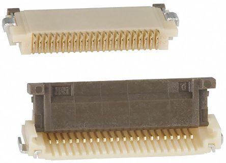 This is FH12 0.5mm Pitch 22 Way Right Angle SMT Female FPC Connector ZIF Top Contact manufactured by Hirose. The manufacturer part number is FH12A-22S-0.5SH(55). The product has a current rating of 500ma. The product is designed with a zif top contact termination. The product is available in surface mount configuration. Moreover, the product has a nominal 50 v ac voltage rating. In addition, female is the available "Gender" of the product. It has right angle body orientation. Moreover, the product is 0.5mm. It allows solder termination method. The product also features robust pps·polyamide housing material. It comes in 1 of rows. The high-quality gold is used as contact plating material. The product fh12, is a highly preferred choice for users. The product contains 22 contacts. It has a maximum operating temperature of +70°c. Whereas, the minimum operating temperature of the product is -40°c. The product is made from sturdy phosphor bronze materials.