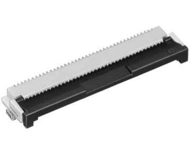This is FH12 12 Series 0.5mm Pitch 45 Way Horizontal SMT Female FPC Connector ZIF Top Contact manufactured by Hirose. The manufacturer part number is FH12S-45S-0.5SH(55). The product has a current rating of 500ma. It has a/an top position contact . The product also features robust polyamide housing material. It has a locking mechanism included yes . It comes in 1 of rows. The high-quality gold is used as contact plating material. It allows smt termination method. The product is designed with a zif top contact termination. It has a maximum operating temperature of +85°c. Moreover, the product has a nominal 50 v ac voltage rating. In addition, female is the available "Gender" of the product. It has horizontal body orientation. Has an zif insertion force. It carries [Serial Number] serial number. The product is available in surface mount configuration. The product fh12, is a highly preferred choice for users. Whereas, the minimum operating temperature of the product is -40°c. Moreover, the product is 0.5mm. The product contains 45 contacts. The product is made from sturdy phosphor bronze materials.