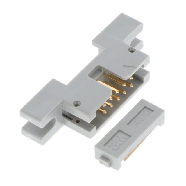 This is manufactured by 3M. The manufacturer part number is 4610-6050. The product contains 10 contacts. In addition, plug is the available "Gender" of the product. It comes in 2 of rows. The product is available in cable mount configuration. Moreover, the product is 2.54mm. The given wire is a sort of discrete or ribbon cable wire. It is assigned with possible HTSUS value of 8536.69.4051. The product is rohs3 compliant. It has 30.0µin (0.76µm) of contact finishing thickness. The product carries possible position value of 10. In addition, it is reach unaffected. It features idc cable terminals. It is shipped in bulk package . Moreover, the product has a wire gauge of 26-28 awg, stranded or solid. plug Connector type offer robust functionality. Furthermore, the product is galvanized with excellent gold contact finishing. Its typical moisture sensitivity level is 1 (unlimited). The splendid features of the product include feed through. The product is available in free hanging (in-line) configuration. It has a classic gray colour. The product 4600, is a highly preferred choice for users. Moreover, the product is 0.100" (2.54mm). It has typical contact type of male pin. The space between it rows includes 0.100" (2.54mm). Moreover, it corresponds to 4610, a base product number of the product. The product is designated with the ear99 code number.