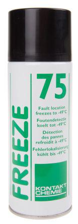 This is 400 ml aerosol Freeze Spray -50°C manufactured by Kontakt Chemie. The manufacturer part number is 84413-AG. It has a standard freezer temperature of -50°c . Applications Information involves detecting electrical faults. The package is a sort of aerosol. Its package size is approximately 400 ml .